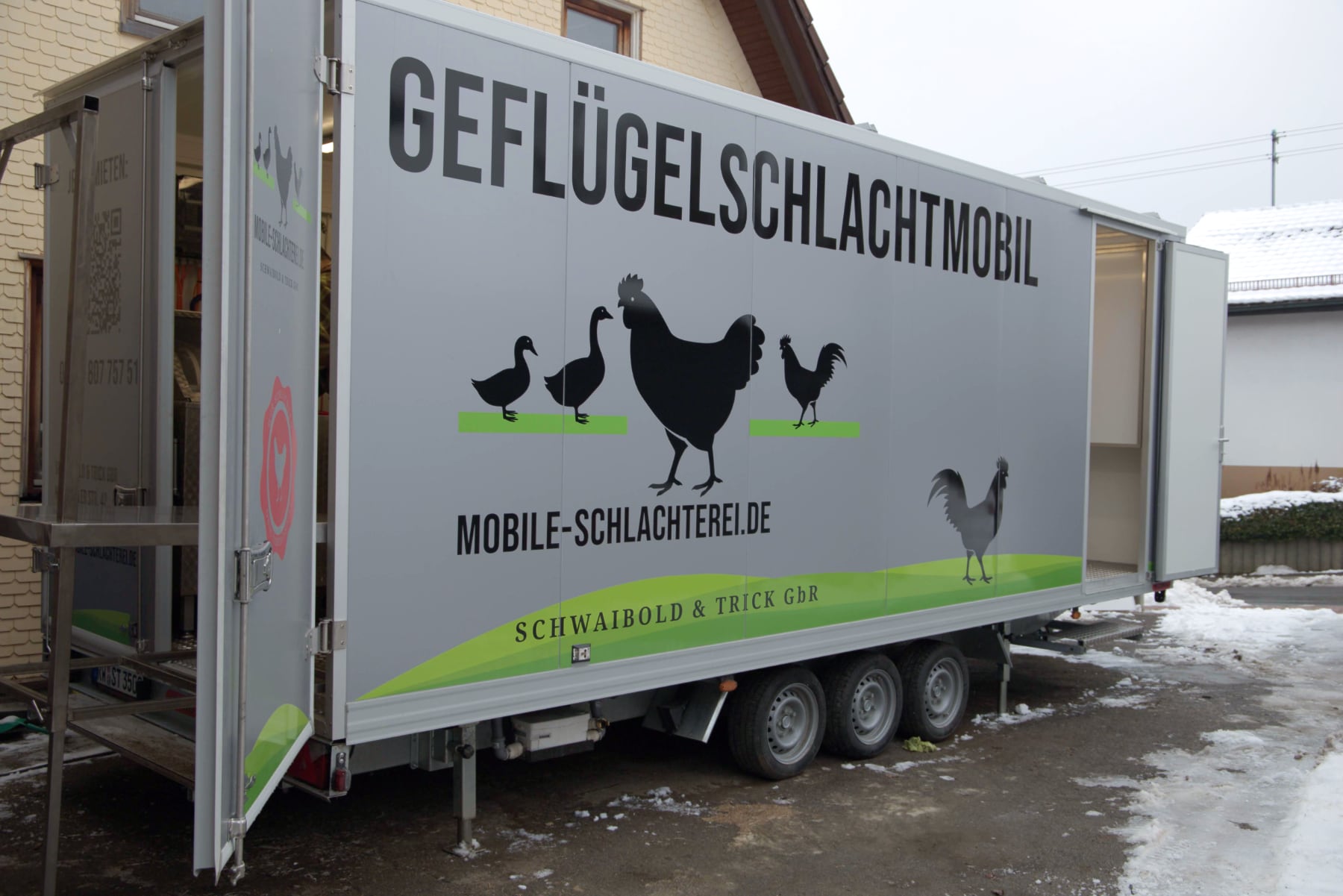 Mit unserem eigen konstruiertem Geflügelschlachtmobil Made in Germany bietet sich Ihnen die perfekte Lösung zur wirtschaftlichen Schlachtung ab 100 Tiere unter Gewährleistung des größtmöglichen Tierwohls.